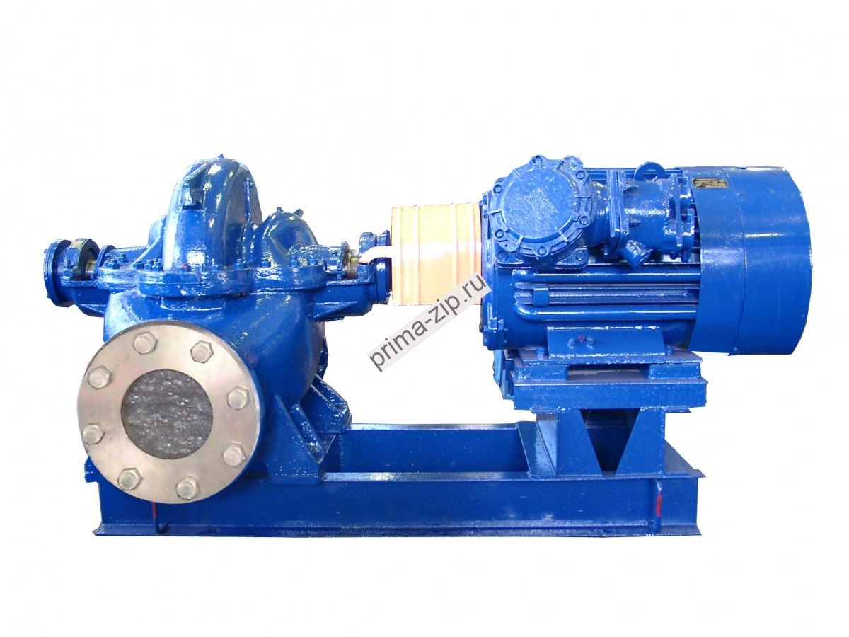 Насос – центробежный двустороннего входа, горизонтальный с полуспиральным подводом жидкости к рабочему колесу и спиральным отводом. Корпус насоса представляет собой стальную или чугунную отливку и имеет разъем в горизонтальной плоскости, проходящей через ось ротора. Всасывающий и нагнетательный патрубки насоса расположены в нижней половине корпуса, благодаря чему возможна разборка насоса без отсоединения трубопроводов и снятия двигателя.