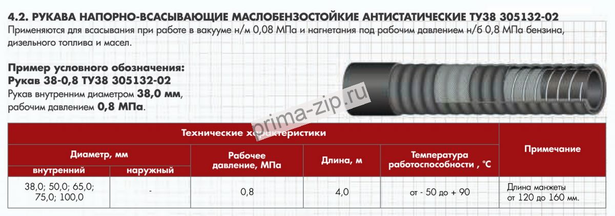 ТУ 38 105373-91, ТУ 2552-23600149245-98 Рукава маслобензостойкие напорно-всасывающие антистатические.
