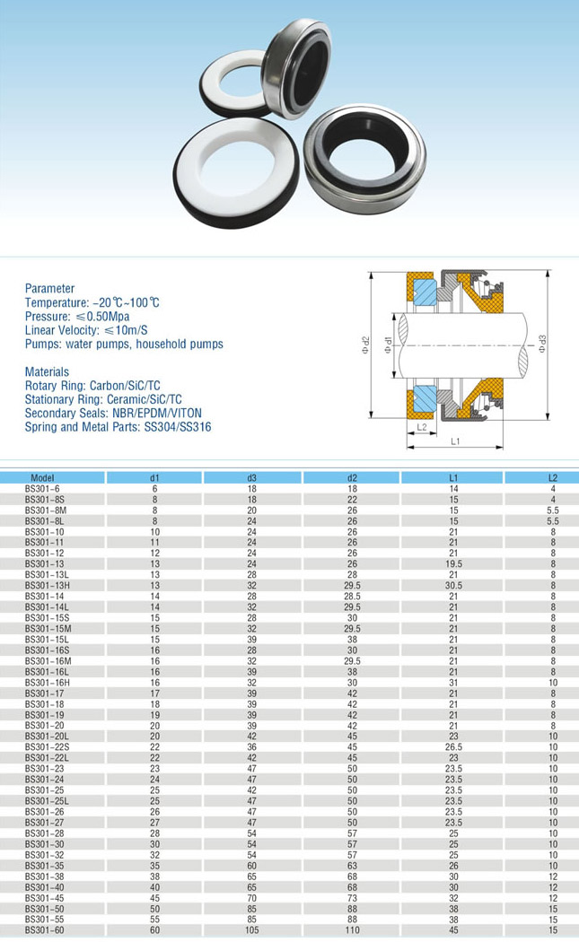 Торцевое уплотнение BS301-13 mm CAR/CER/NBR