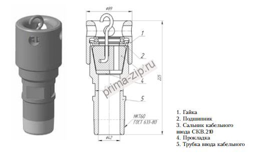 Кабельный ввод предназначен для герметизации кабеля идущего от электродвигателя к клеммной коробке, при выходе из фонтанной арматуры.